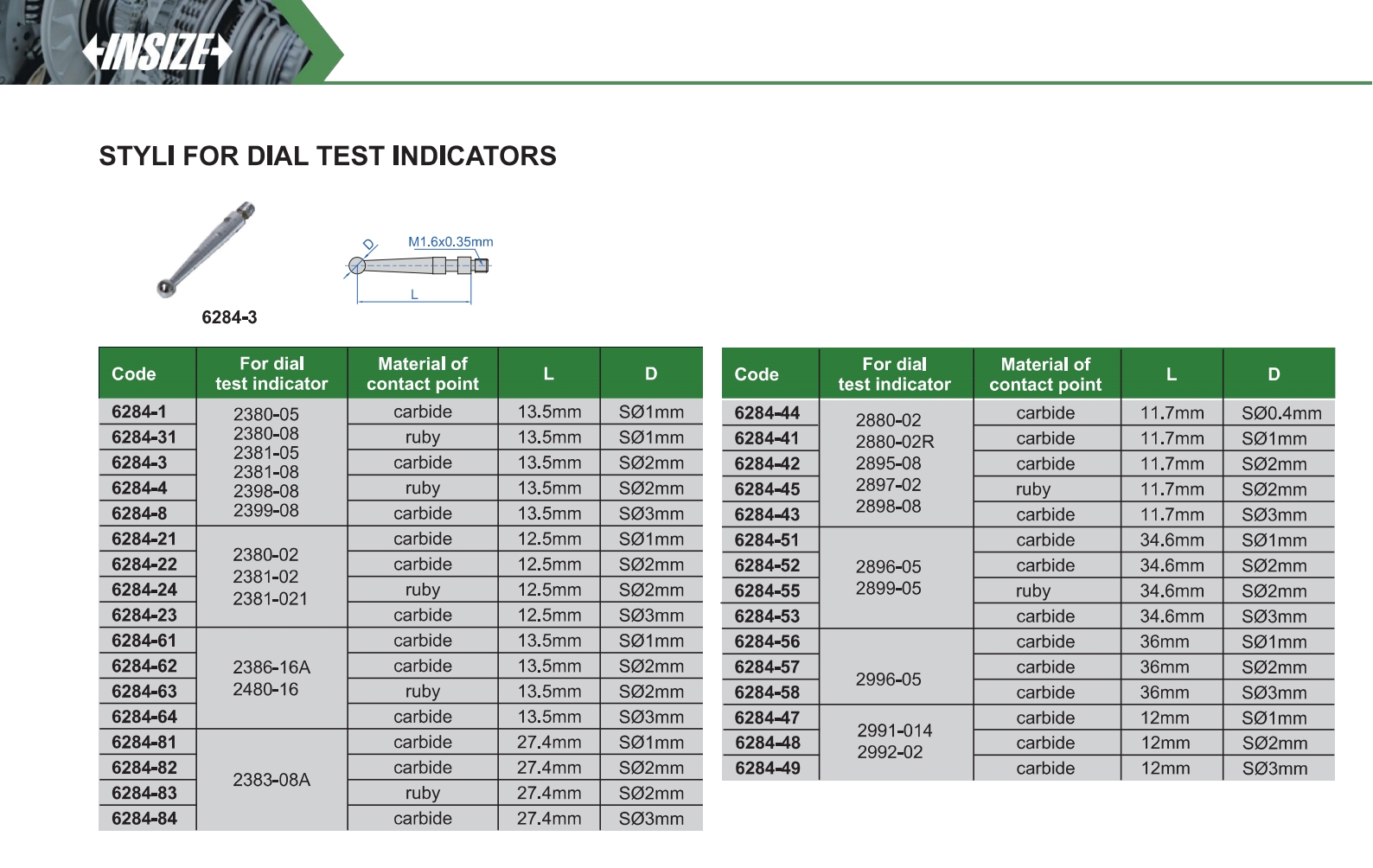 Styli For Dial Test Indicators