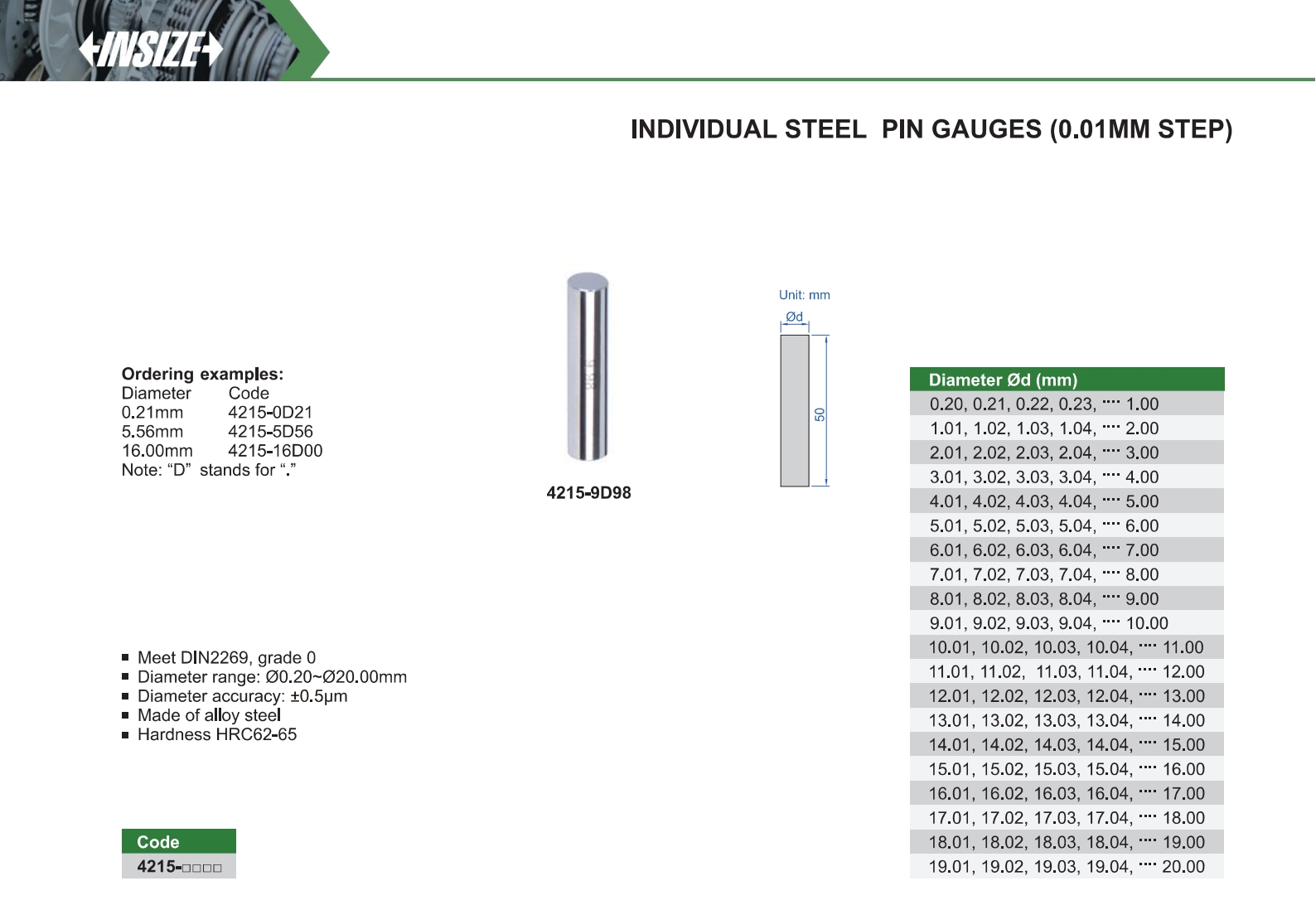 Individual Steel Pin Gauges (0.01mm Step)