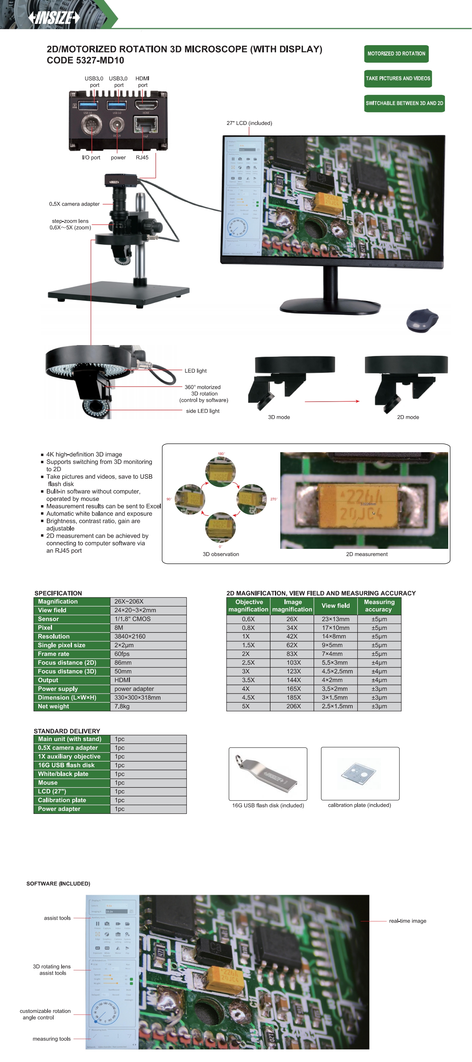 2D/Motorized Rotation 3D Microscope (With Display)