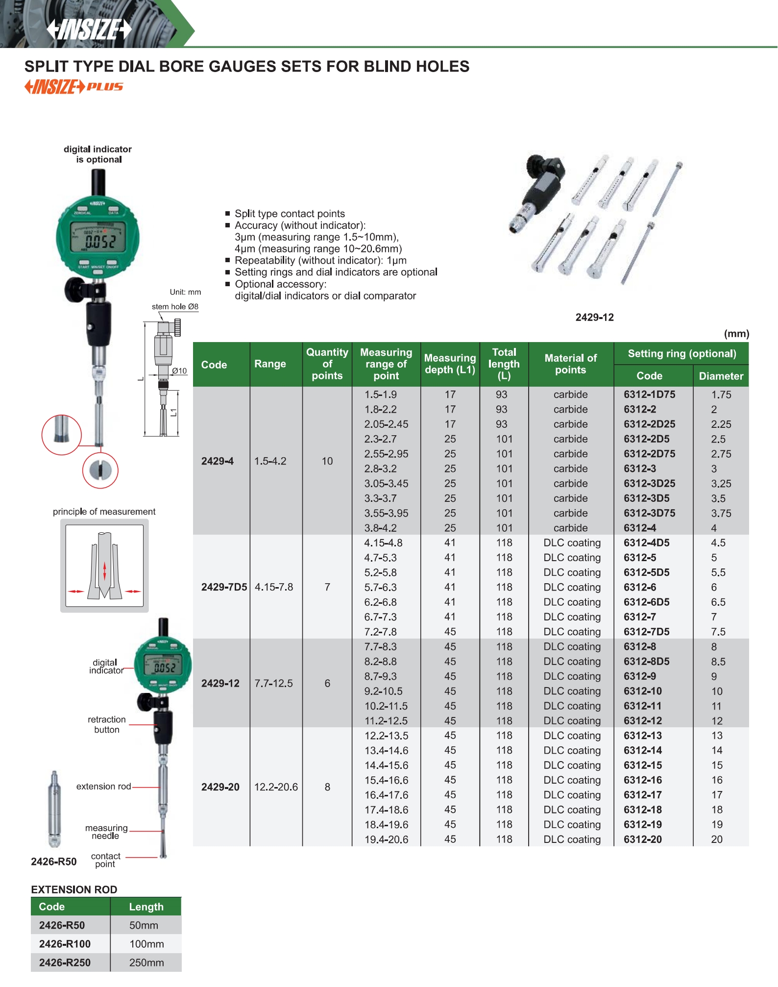 Split Type Dial Bore Gauges Sets For Blind Holes