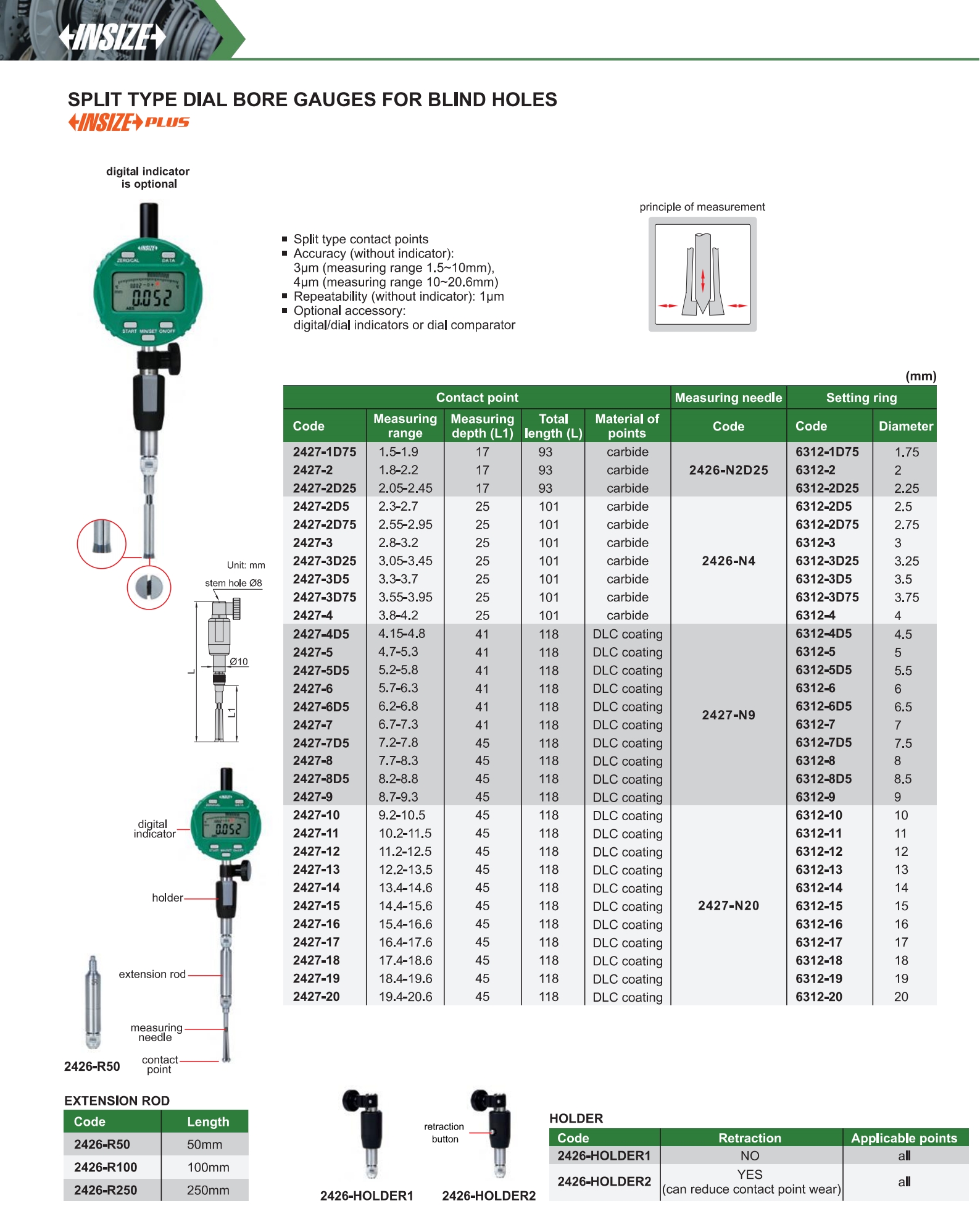 Split Type Dial Bore Gauges For Blind Holes