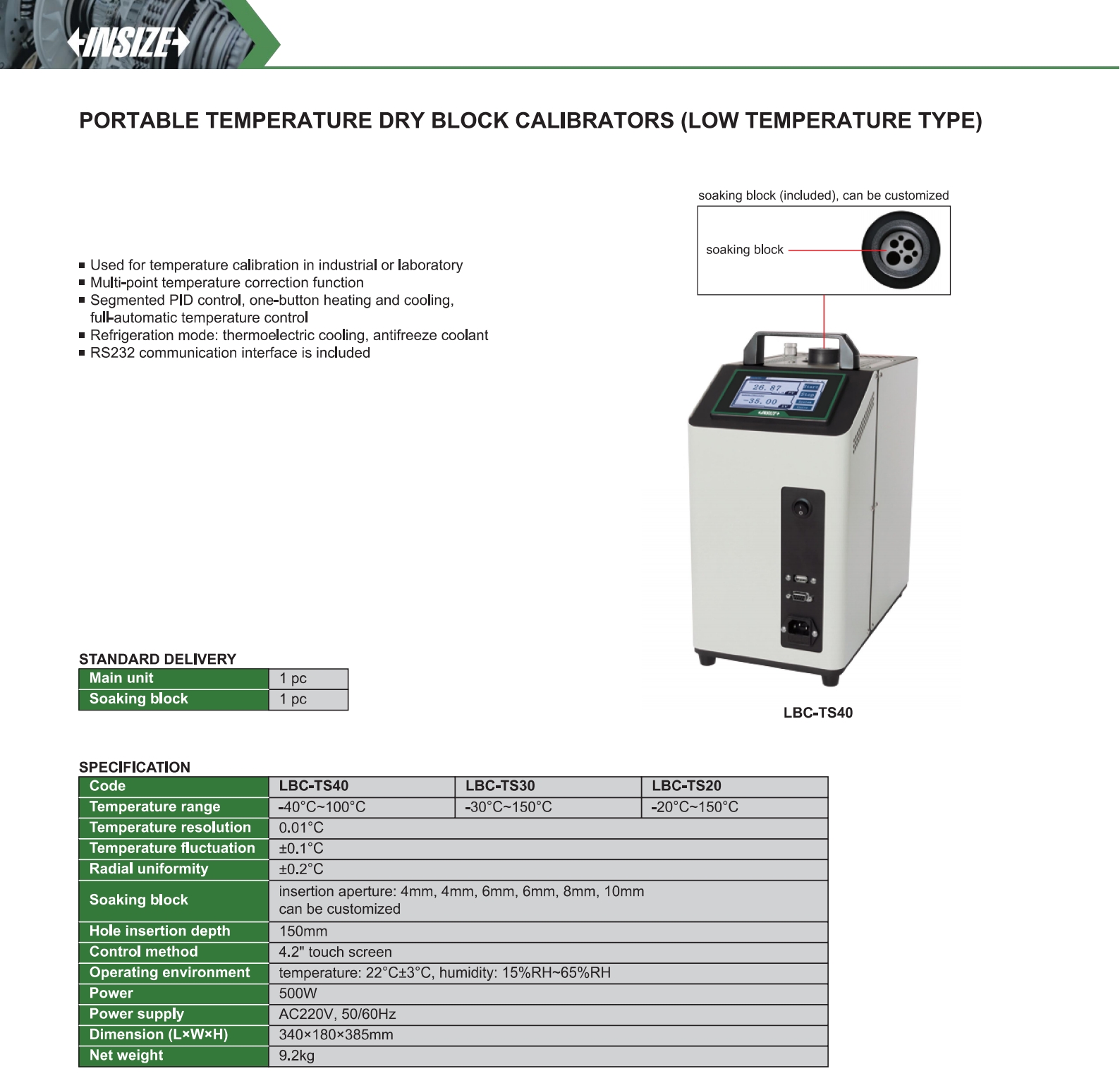 Portable Temperature Dry Block Calibrators (Low Temperature Type)