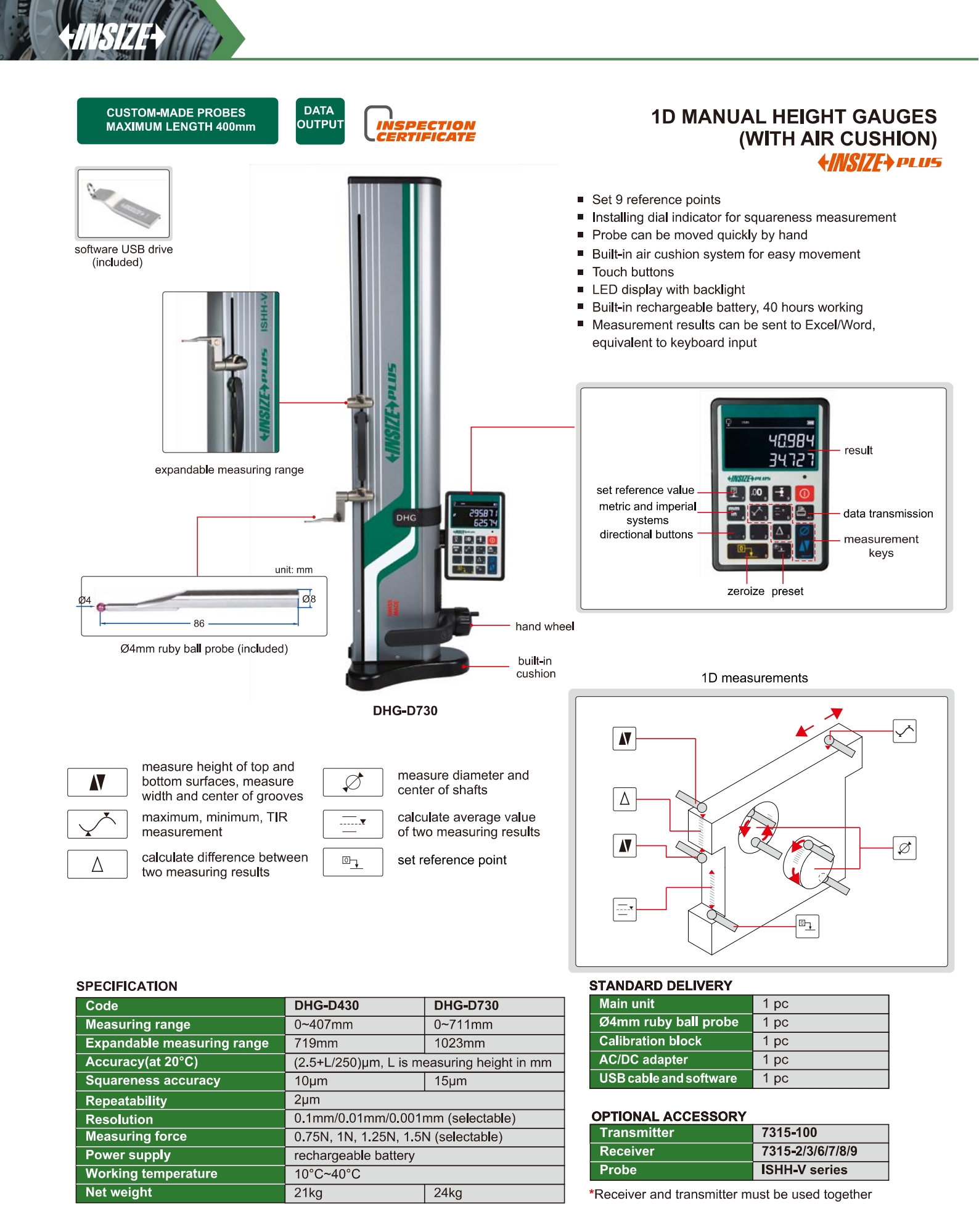 1D Manual Height Gauges (With Air Cushion)